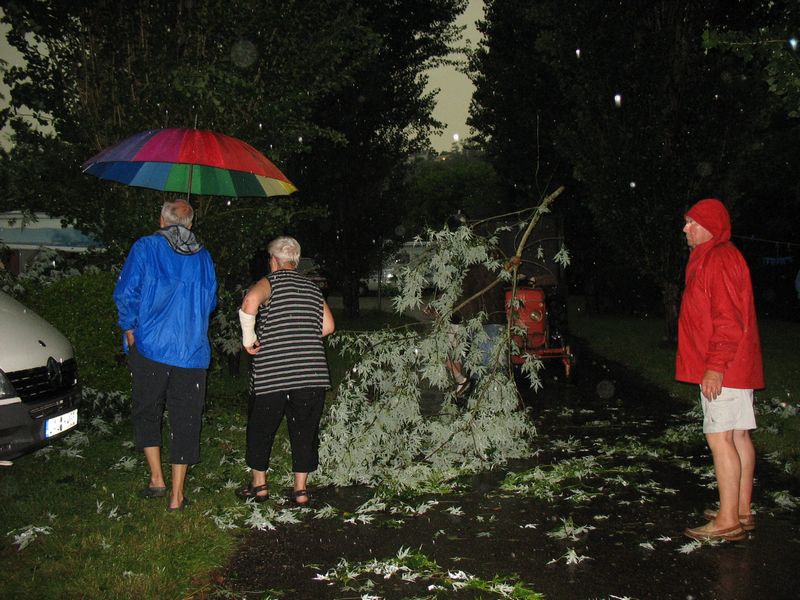 Der Platzbesitzer staunt mit.C'etait mon arbre, Monsieur. Pourquoi mon arbre est-il tombé? |
