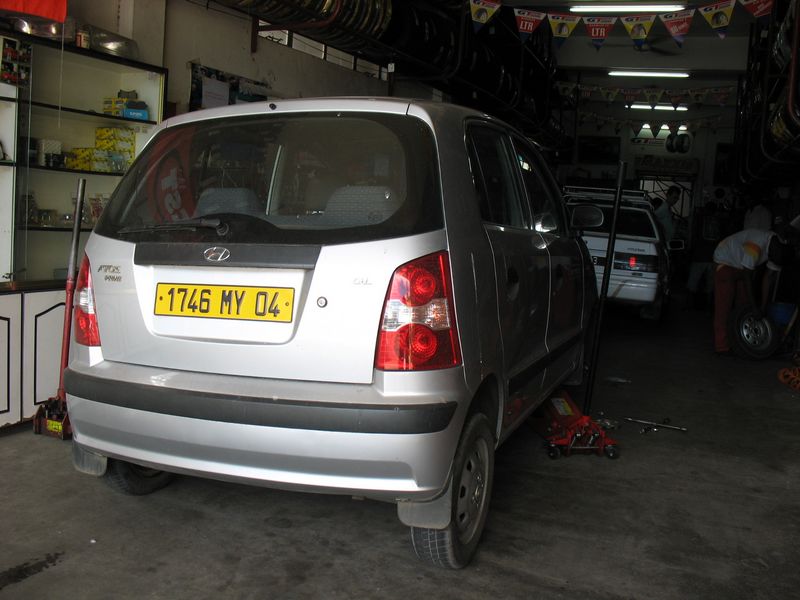 Unser Mietwagen verliert LuftAlso ab in die Werkstatt in Goodlands. Der Reifen ist schnell ausgebaut... |