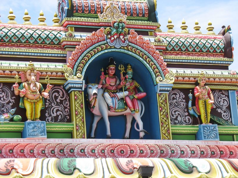 Hindu Tempel bei Cap MalheureuxShiva nebst Gattin auf seinem Reittier Nandi. Links daneben Ganescha. |