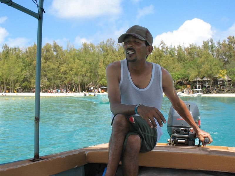 Ile aux CerfsAuf der "Rückreise" zum "Festland". Der Kollege hier hat ein Boot und nimmt uns mit. Allerdings nur, weil wir auch genügend der örtlichen Glasperlen dabei hatten... |