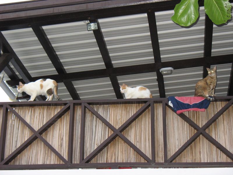 Die drei Hunde haben sich geweigert, mit auf das Geländer zu kommen.
