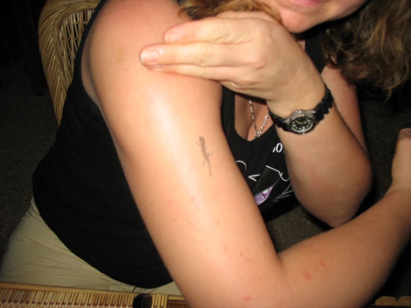 Kein Tattoo......sondern ein waschechter Gecko. Oder so. Leider ein wenig unscharf... |